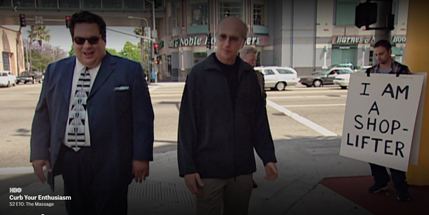 Strange but true Curb Your Enthusiasm Trivia: The Brady Bunch and Curb Your Enthusiasm filmed at the exact same location! Larry bought the surrogate’s doll at the same place that Peter Brady bought his magic trick in Season 2, Episode 20 of the Brady Bunch in 1971. The toy store closed and is now…the site where Al Abbas Chicken scenes were filmed!